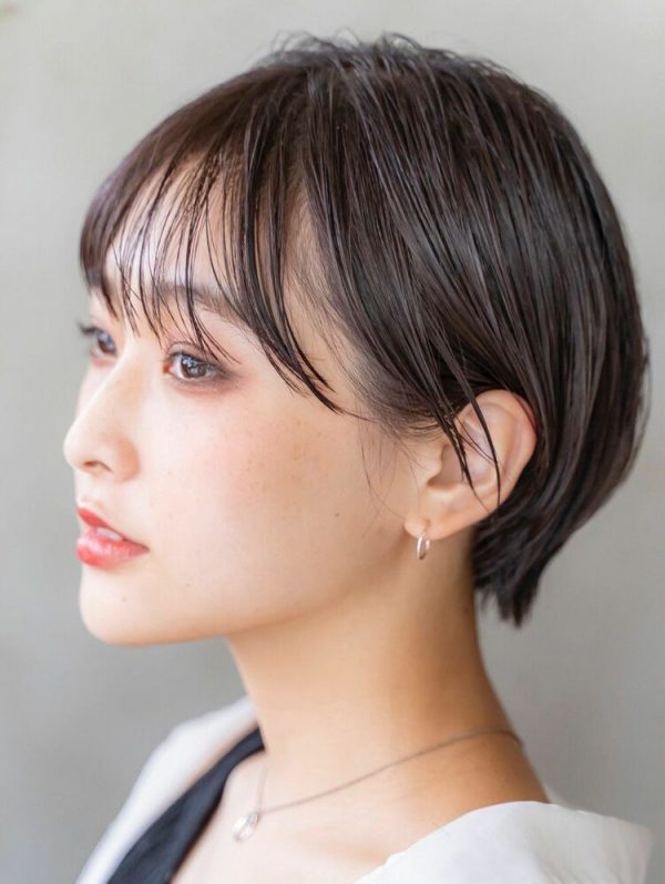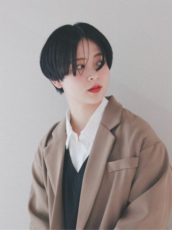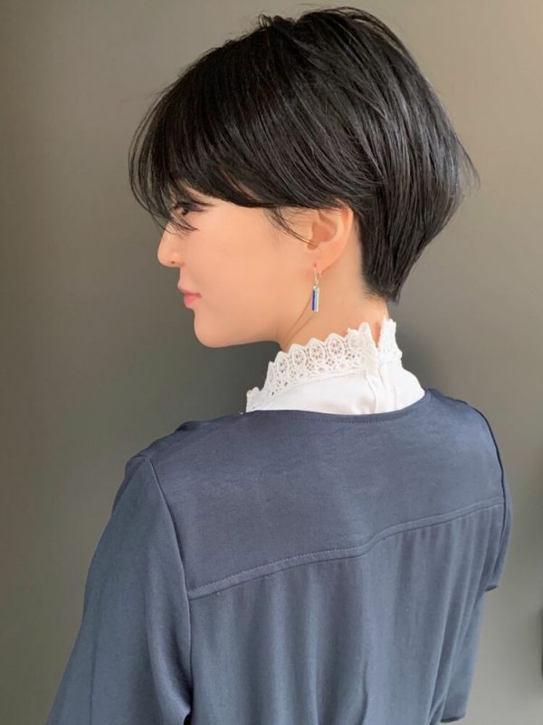 黒髪や暗髪のハンサムショートはクールな印象が強いですが、きれいめな雰囲気もでるようにセットすることで、より大人女性にも似合う髪型となりますよ。