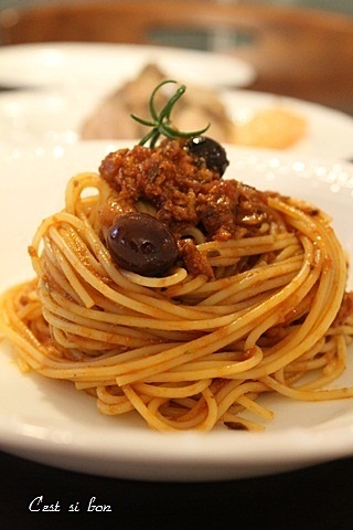 楽天レシピ:「鯖水煮缶と玉ねぎの和風パスタ 」より