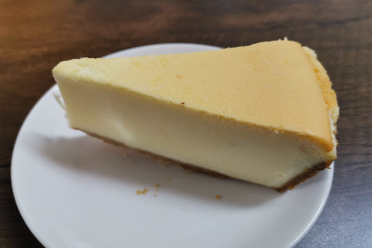 見た目はオーソドックスなチーズケーキで、下部のグラハムがぎっしりと詰まった状態で冷凍されているからか、少し盛り上がった形になっている。