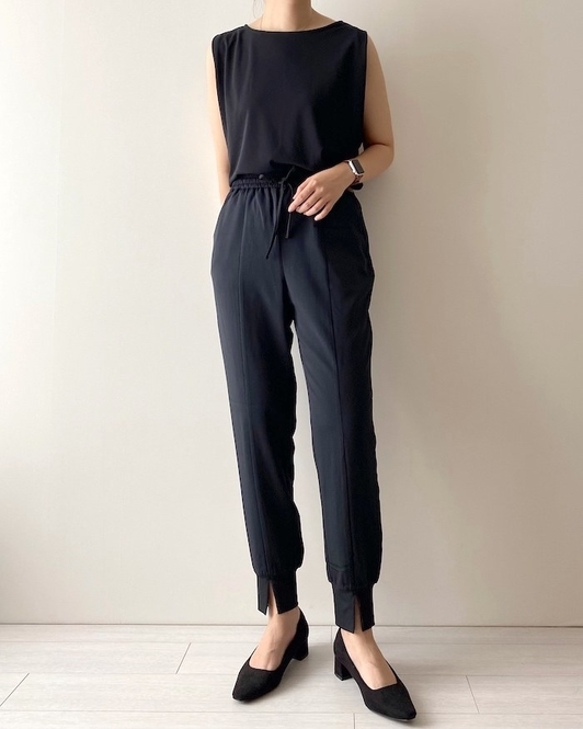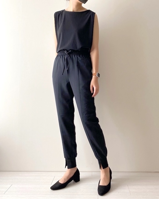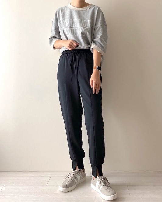 GU(ジーユー)で見つけた「センターシームジョガーパンツQ」は、裾にスリットが入ったデザインがオシャレ♡パンプスを合わせてきれいめに、スニーカーならスポーティに。1枚でいろんな着回しができますよ〜!