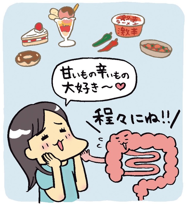 糖分、塩分は腸が特に吸収しやすく、腸内環境を乱す原因に。「塩は、腸の有用菌である乳酸菌と結合し、腸内環境を乱したり、慢性炎症の原因となることが分かっているので、塩辛いものは控えましょう。また精製された白い砂糖は、悪玉菌のエサになったり、腸で良い働きをする特定の腸内細菌の定着をブロックしてしまうので、糖分の摂りすぎにもご注意」。砂糖代わりに、善玉菌のエサとなるオリゴ糖シロップや、オリゴ糖をたっぷり含んだハチミツがおすすめ。