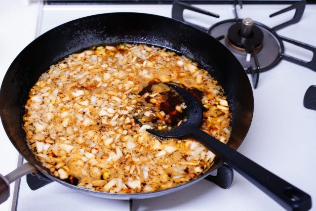 ③ ②のフライパンに水350mlを入れて◎の調味料を入れていく。