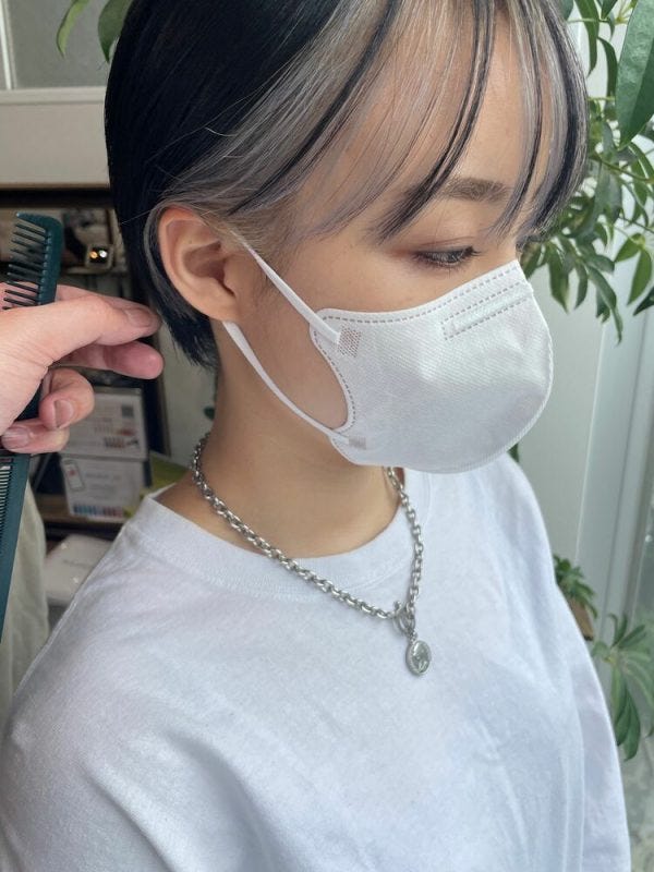 こちらは前髪の内側ともみあげ部分をブリーチして、ホワイト系の色味を入れたバングカラーです。