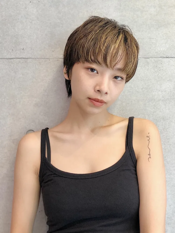 インナー使いでなじむショートのバングカラー