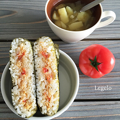■バジルチーズライスとトマトエッグ おにぎらず ☆ 朝ごはん お弁当に ♪