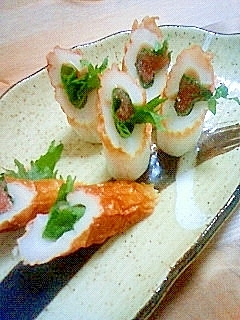 楽天レシピ:「ちくわのシソたらこ巻 」より