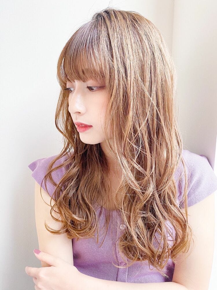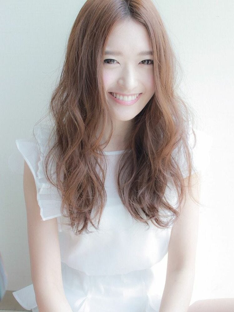 面長な方には、明るいカラーリングで軽やかな印象のロングヘアがおすすめです。
