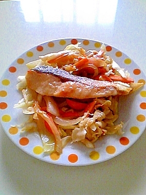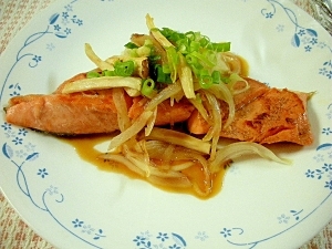 楽天レシピ:「チャンチャン焼き風☆鮭のムニエル 」より