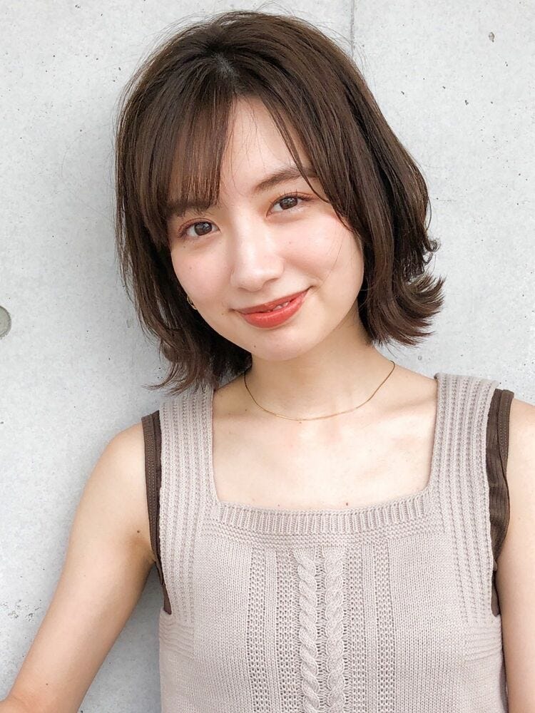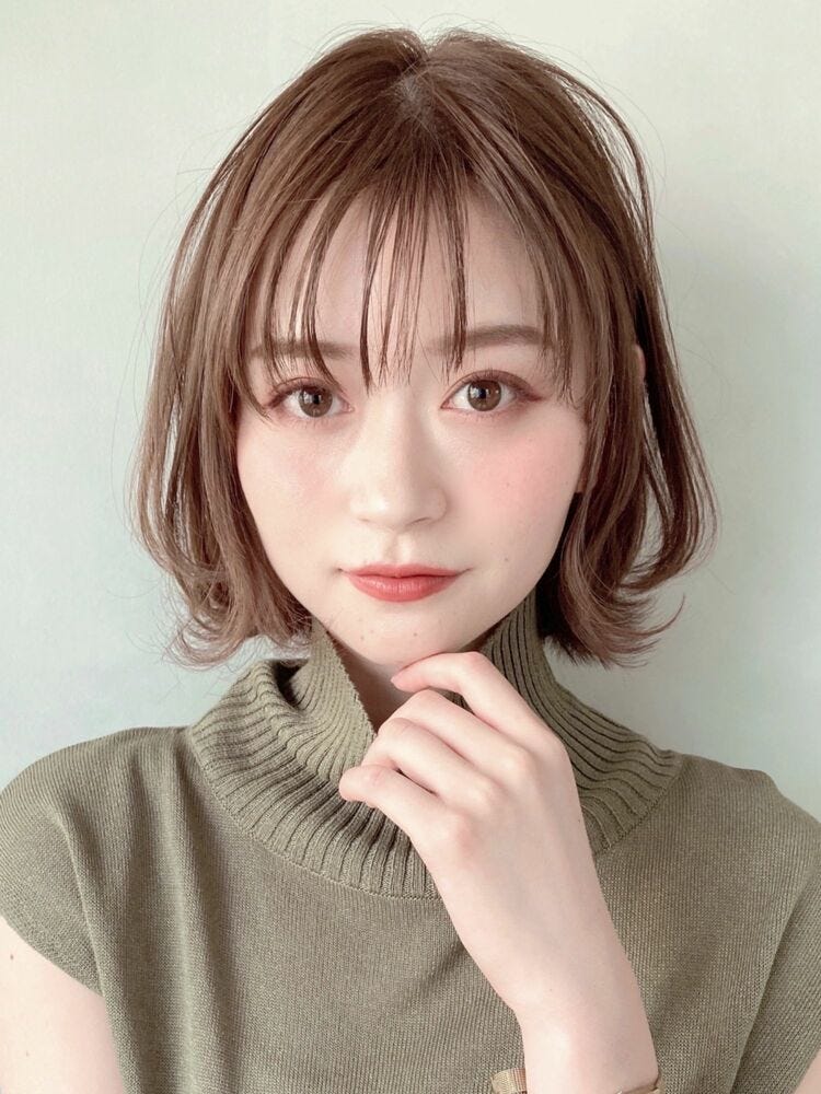 短めのショートボブでも、耳のラインにボリュームが出るようにくびれカットすることで、小顔効果が期待できます。