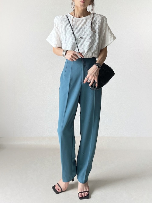 ①しなやかなドレープ&センタープレスでまっすぐ脚長