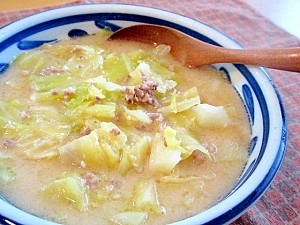 楽天レシピ:「キャベツと豚ミンチの酒粕生姜スープ♪ 」より