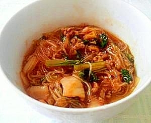 楽天レシピ:「坦々風 キムチ春雨スープ 」より