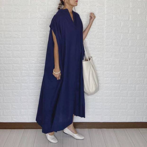 【ネイビーワンピース】痩せて見える夏コーデ⑤キーネック×Aラインシルエットが最強♡