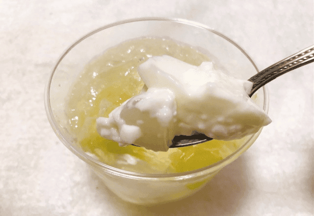 ナタデココのこりこりとした食感が加わり、食感の違いも楽しめるスイーツ!