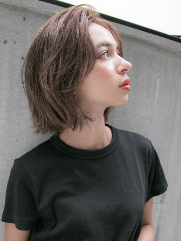低めにレイヤーを入れ、重心を下にもっていったボブにダークトーンの髪色を合わせています。