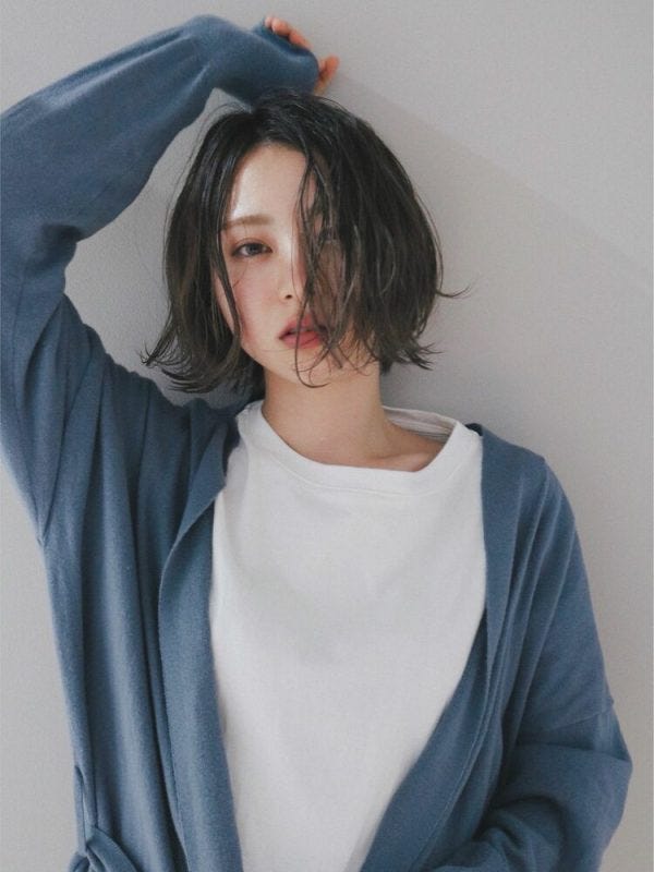 こちらではレイヤーでくびれがつきやすいボブに、パーマをかけることで毛先にランダムな動きをつきやすくしています。