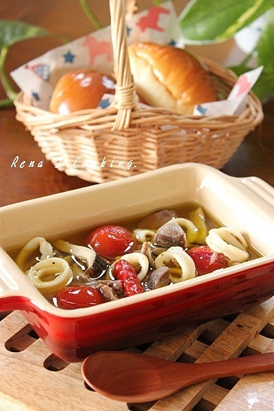 楽天レシピ:「ヤリイカと明太子のクリームスパゲッティ 」より
