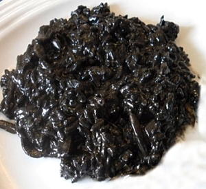 イカスミのリゾット、食べたあとは鏡を見るのをお忘れなく。