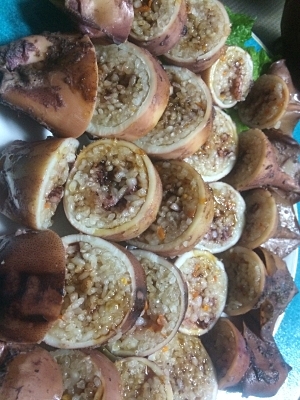 丸ごとイカの中にご飯が詰まっているイカめし。