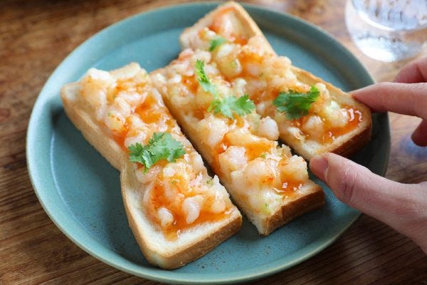 えびとチリソースのアレンジおかずトースト
