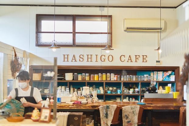 観光スポット「太秦映画村」から歩いて7分。ノスタルジックな路面電車、京福電鉄北野線「常盤駅」から徒歩5分の場所にある「ハシゴカフェ キョウト」。ロケーションとマッチした素朴な佇まいです。