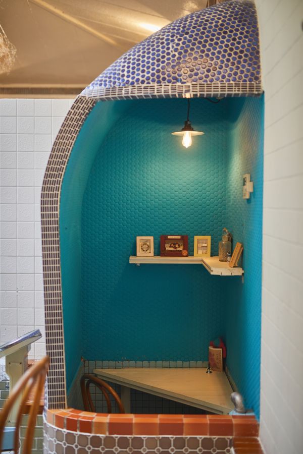 蛇口のカランもそのまま残した二人掛けの席。半個室的な1人席や2人席があるのも面白いつくりです。お目当ての席が空いていたらラッキー。空いていなければまた今度。何度でも訪れる楽しみがあります。