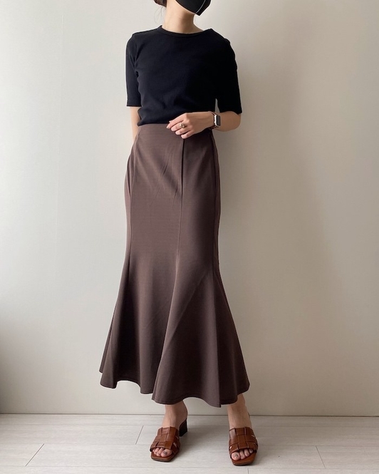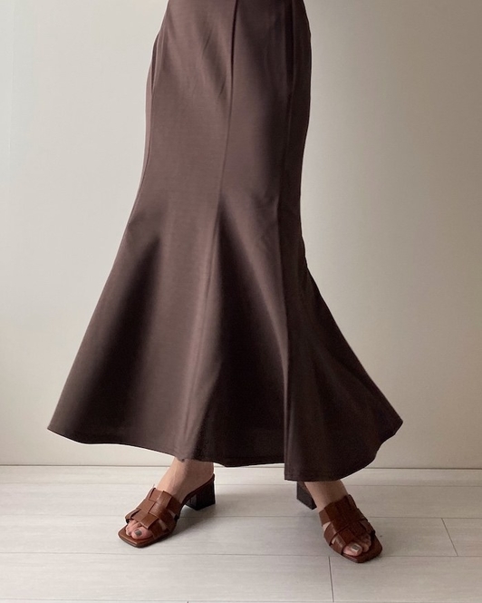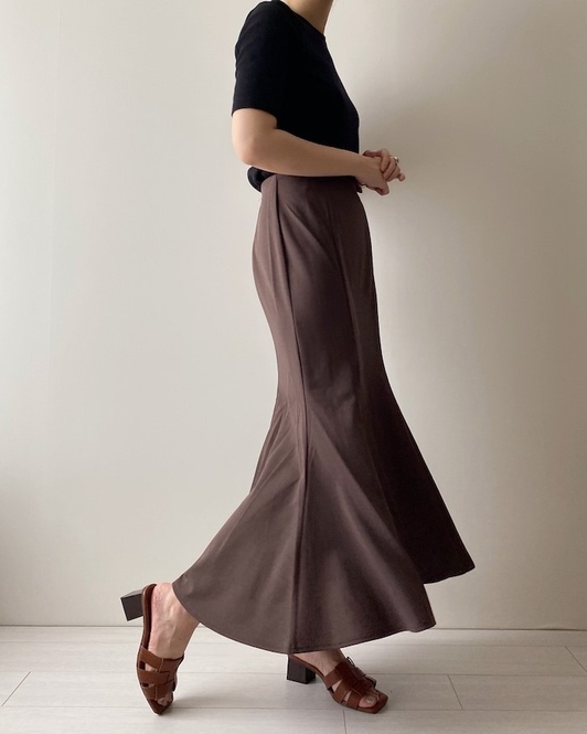 腰回りはフィットして、膝上からなだらかに広がっていくマーメイドスカート。