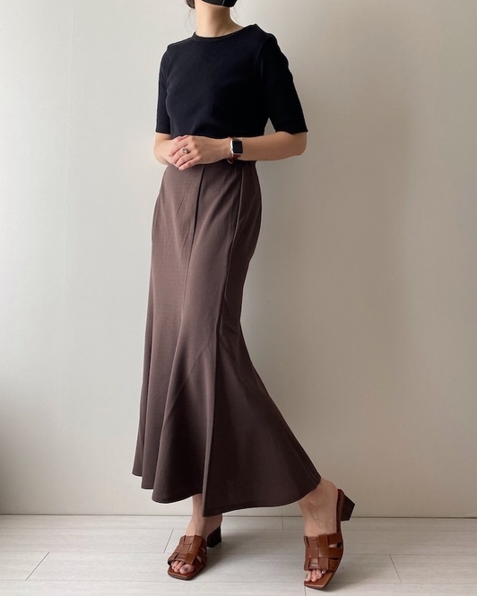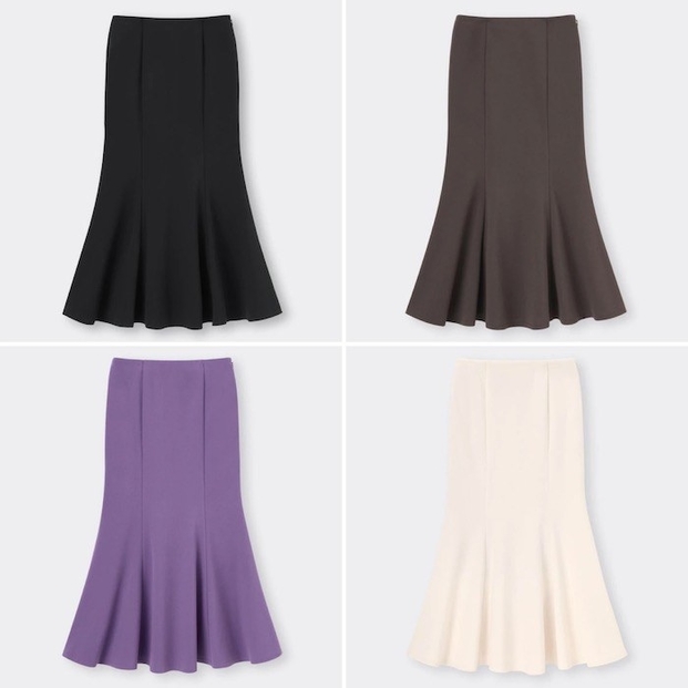 GU(ジーユー)の「カットソーマーメイドロングスカート」は、裾がふんわり広がるマーメイドシルエットがとにかくきれい…♡上品なデザインですが、ストレッチが効いているので動きやすさもばっちりです!