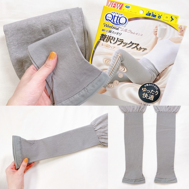 ロカリ編集部も着用してみましたが、やわらかい素材で伸びが良く、どれだけラフな姿勢になってもストレスなく過ごせることに感動しました。着圧している窮屈感はなく、リラックスしながら脚をケアできるのが嬉しかったです。日中も就寝タイムもOKなので、おうち時間のリラックスアイテムとして履いています。足首まで隠れるから、冷房による冷え対策にも◎。履いているうちに脚がスッキリしてくるためか、フットワークが軽くなって家事(主にお掃除)がはかどったのが意外な?発見でした。