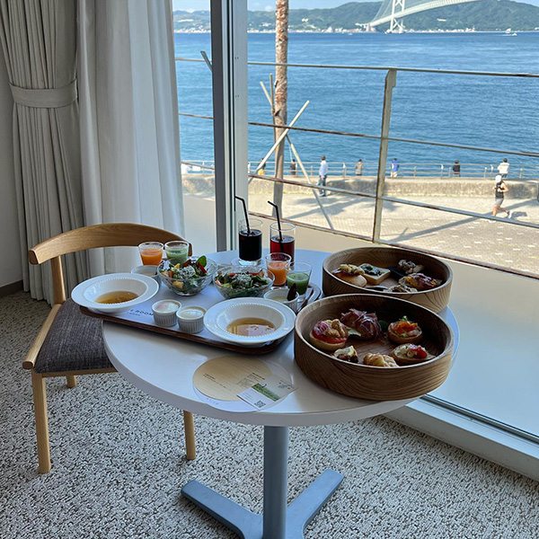 「海+明石海峡大橋+夕日」という贅沢空間で、リラックスタイムを存分に満喫できそうですね。