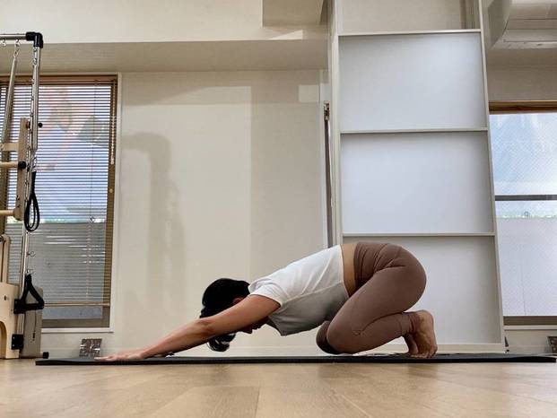 背骨を丸めたり反らせたりと、5〜7回繰り返してみましょう♪