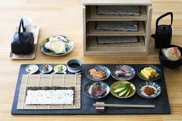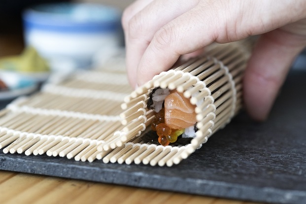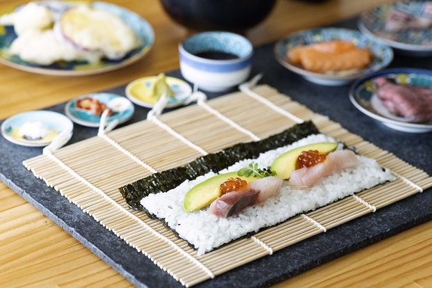 細巻き寿司を作る時には欠かせないアイテム“巻きす”でクルクルと巻けば、完成。金沢ではひと昔前まで、お祭りなどの催事のご馳走として細巻き寿司を作る家庭が多くありました。そんな、どこの家にもきっと昔はあったであろう“巻きす”。現在では目にする機会もほとんどなくなりましたが、「COIL」でなら、細巻き寿司を作りながら日本の伝統的な“食“や“モノ”の文化を気軽に体験できちゃいます!
