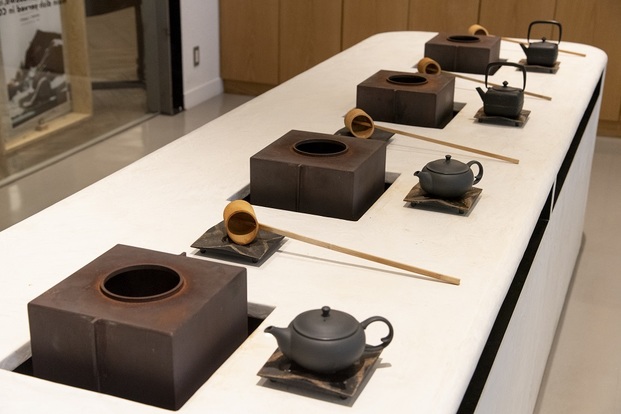 利き茶は、好みの茶葉を選んで鉄瓶にセットし、茶釜に張られたお湯を注いでいただく本格派。日本の伝統的な流儀をここでも体験することができ、気分はちょっぴり大和撫子。鉄瓶で入れたお茶はとてもまろやかな味わいで、口にすると何だかほっとします。スープのお湯は別で用意されており、熱々を飲むことができます。