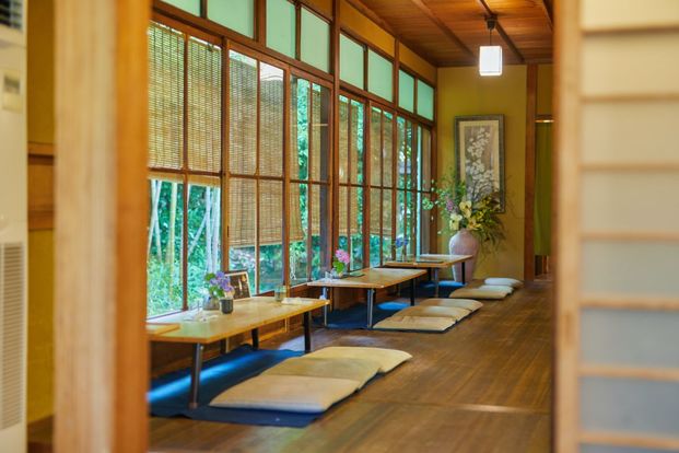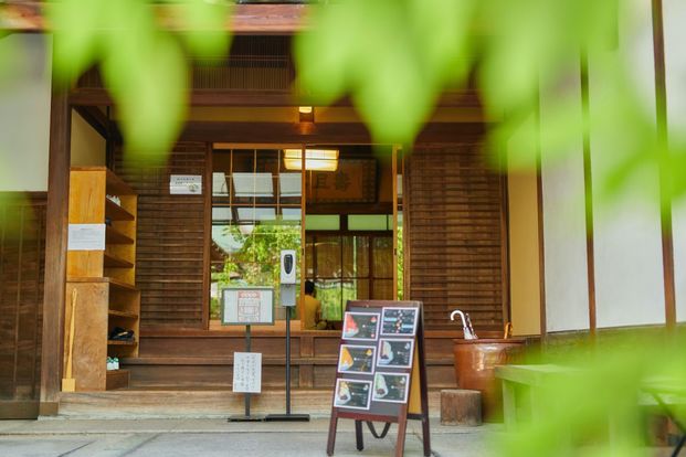 手前の店舗部分で和菓子を販売、奥の母屋がカフェ棟になっています。