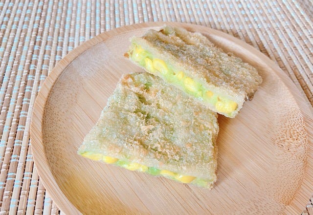 中にたっぷり詰まったコーンと枝豆のプチプチした食感が楽しめます。