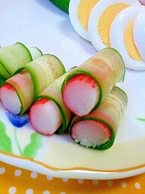 かわいいお弁当のおかず!かにかまのきゅうり巻き