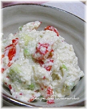 楽天レシピ:「ちょこっとおかず!アボカドとカニカマの豆腐和え 」より