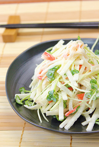 【コロコロ和風マヨサラダ】 きゅうり、ちくわ、カニカマを好みの大きさに切り、 マヨネーズで和える。 めんつゆ小さじ1とかつおぶし3gを加えてさらに混ぜる http://t.co/s1bxFzDAvZ
