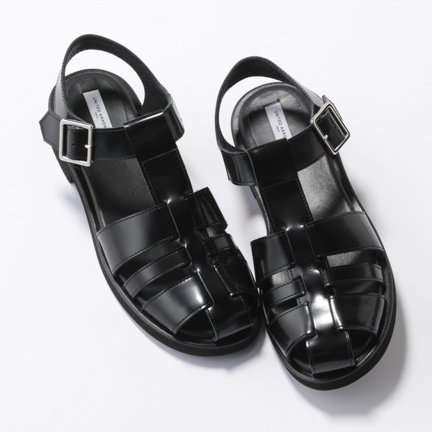 約3cmのちょいヒールと軽量デザインにより、快適な履き心地を実現。スナップボタンで留められるため、わざわざバックルを操作する必要はありません。秋からはソックスと合わせて履くのも可愛い。サンダル¥22,000(ユナイテッドアローズ/ユナイテッドアローズ 有楽町店)