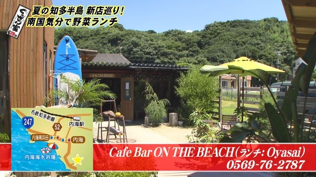 まずやってきたのは『Cafe Bar ON THE BEACH(ランチ:Oyasai)』。 南国気分が味わえるおしゃれなカフェで、地元産の新鮮野菜をたっぷり使った料理がいただけます。
