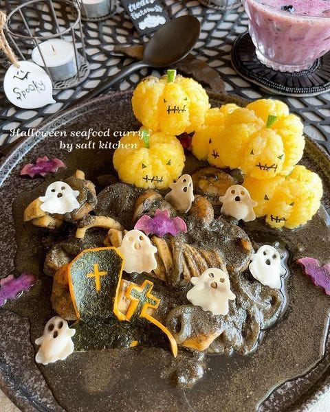 黒が目を引くハロウィンシーフードカレー