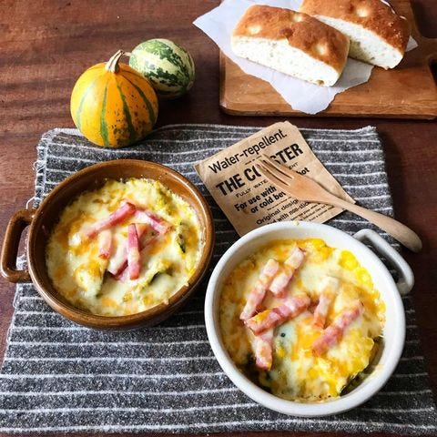 かぼちゃの甘味が引き立つグラタンです。ミニカップに入れる作り方なら、そのままお弁当に入れられて便利ですよ。