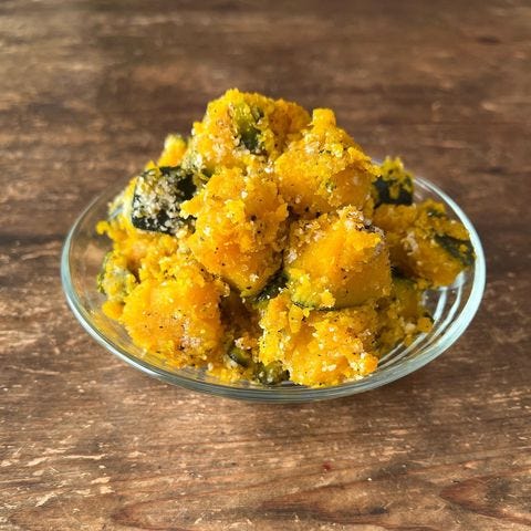 定番の作り方でできる粉ふきかぼちゃチーズ黒胡椒味