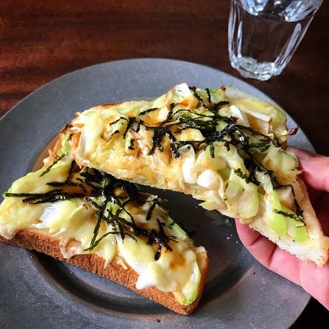 ネギマヨトーストは、食パンの上にマヨネーズを塗り白ネギ・焼き肉のタレ少々・チーズをかけて焼くだけの簡単アレンジレシピです。