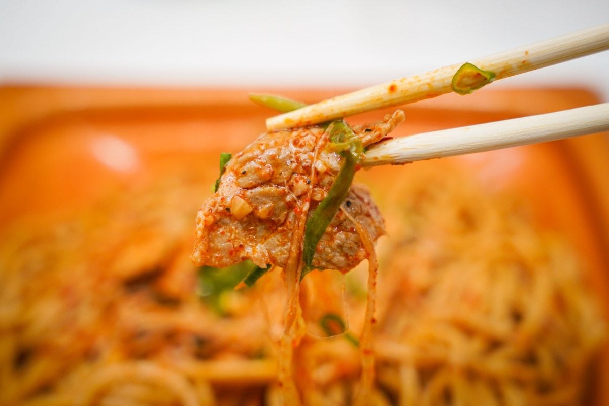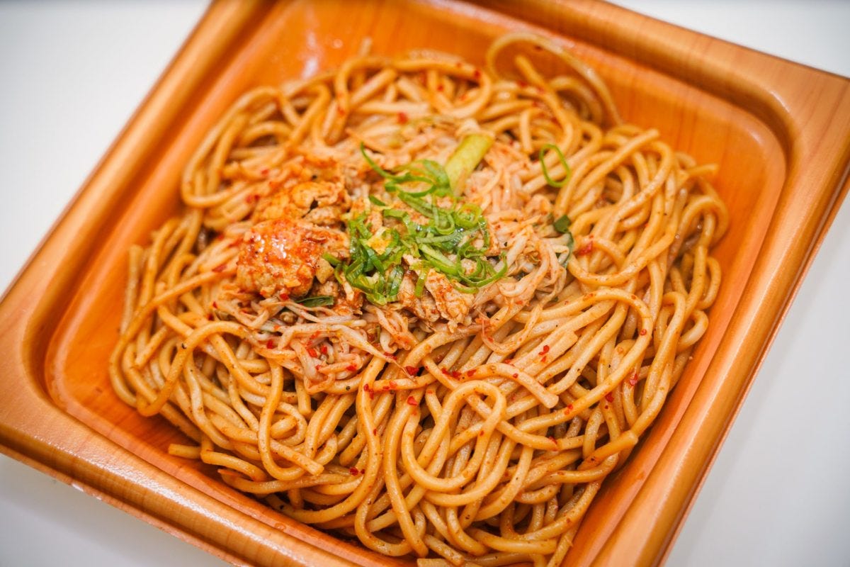 焼きそばと銘打っているが、ガーリックとラー油の風味が効いており味としては「油そば」の方が近いかもしれない。
