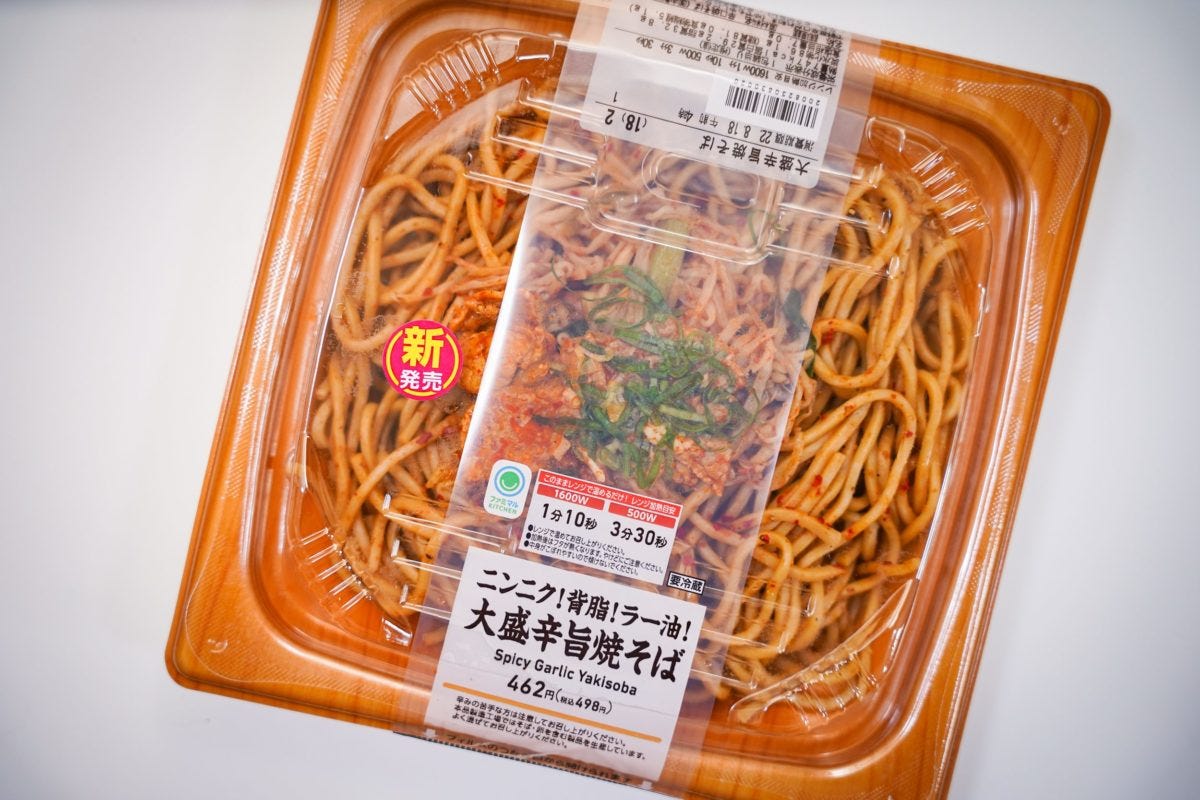 16日からファミリーマートに、新商品『ニンニク!背脂!ラー油!大盛辛旨焼そば』(498円)が登場した。夏にぴったりのインパクト抜群な内容となっているようだ。