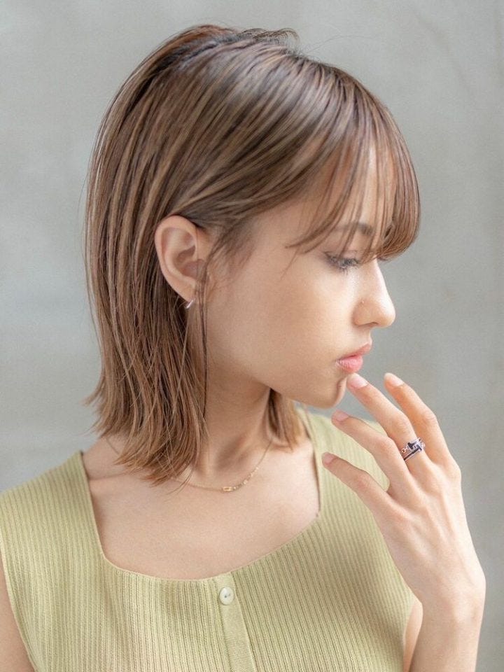 大人っぽい雰囲気で、秋も人気の薄めの前髪にすることでシンプルでもトレンドを意識した髪型になりますね。