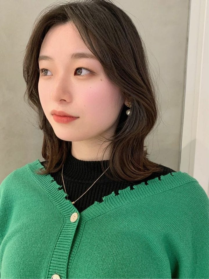 顔周りに動きが出る韓国くびれミディは、女性らしさ満点のトレンドスタイルです。