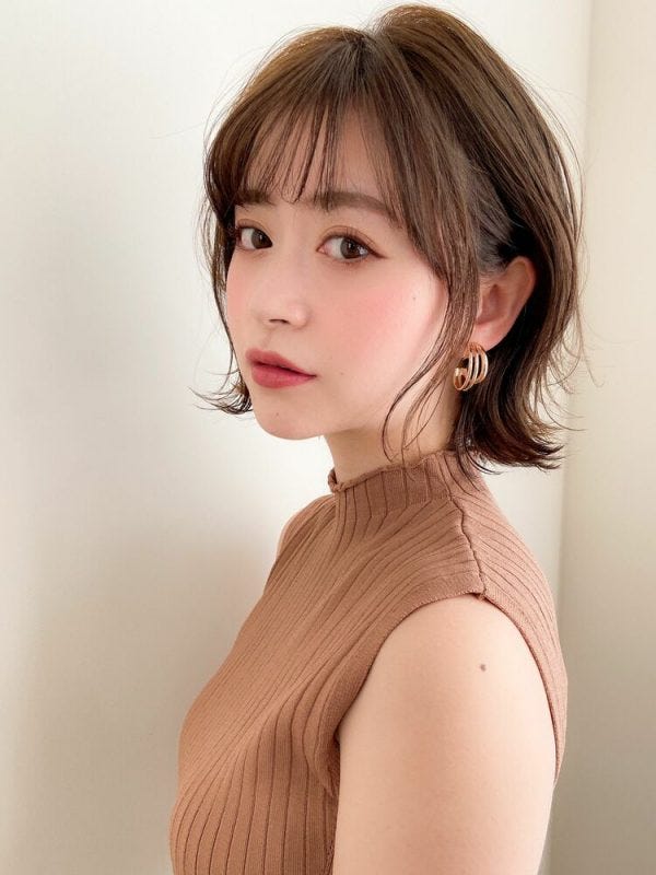 こちらはパーマなしでもきれいなシルエットで、落ち着きがあるカラーのため大人女性も挑戦しやすい髪型です。