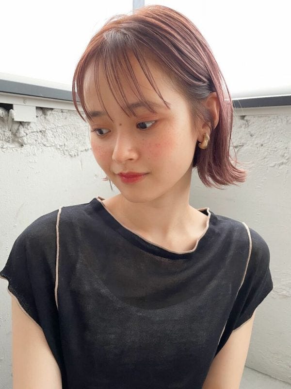 毛先に以前のブリーチの明るさが残っているという大人女性なら、トレンドのピンク系でも暗めのものを選んで入れるヘアカラーがおすすめです。